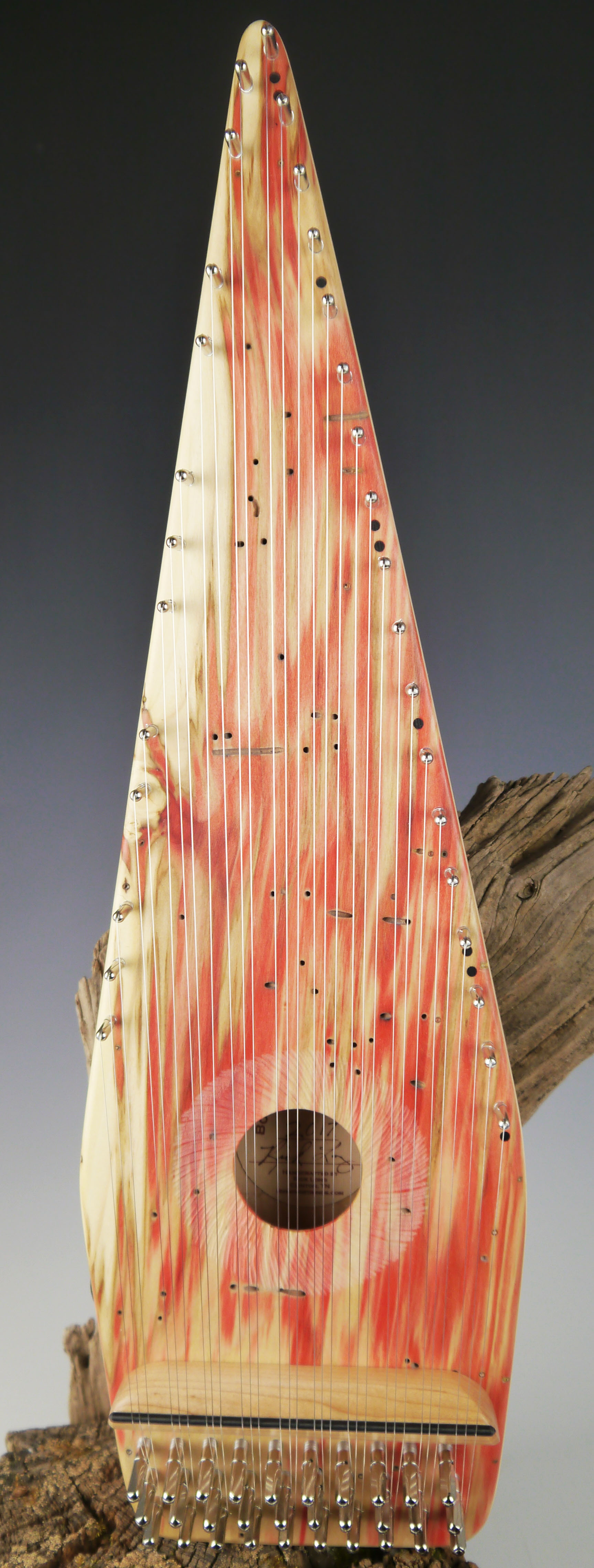 This soundboard wood is a new one for me to offer. I have made several psalteries using it, but this is the first I have offered on my website. The base color of the wood is really close to the color of the hard maple. The red/pink streak are caused by the boxelder beetle. It is a stunning wood and I'm glad I was able to find some in the quality I need for my psalteries.